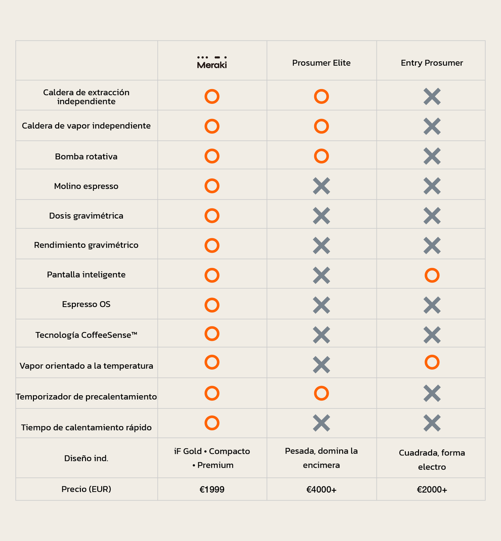 Meraki combina un rendimiento de alta gama con un diseño intuitivo. Ganadora del iF Design Gold Award 2025, cuenta con balanzas gravimétricas dobles, interfaces claras y un funcionamiento fluido, lo que facilita a cualquiera la elaboración de café con calidad de cafetería, desde leche sedosa hasta un espresso equilibrado, sin conjeturas.