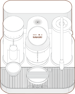 Conçue pour s'harmoniser avec votre cuisine, Meraki allie esthétique premium et efficacité compacte. Sa forme minimaliste et ses finitions haut de gamme en font à la fois une pièce maîtresse et une machine à café haute performance, invitant le café de qualité barista chez vous avec élégance et simplicité.