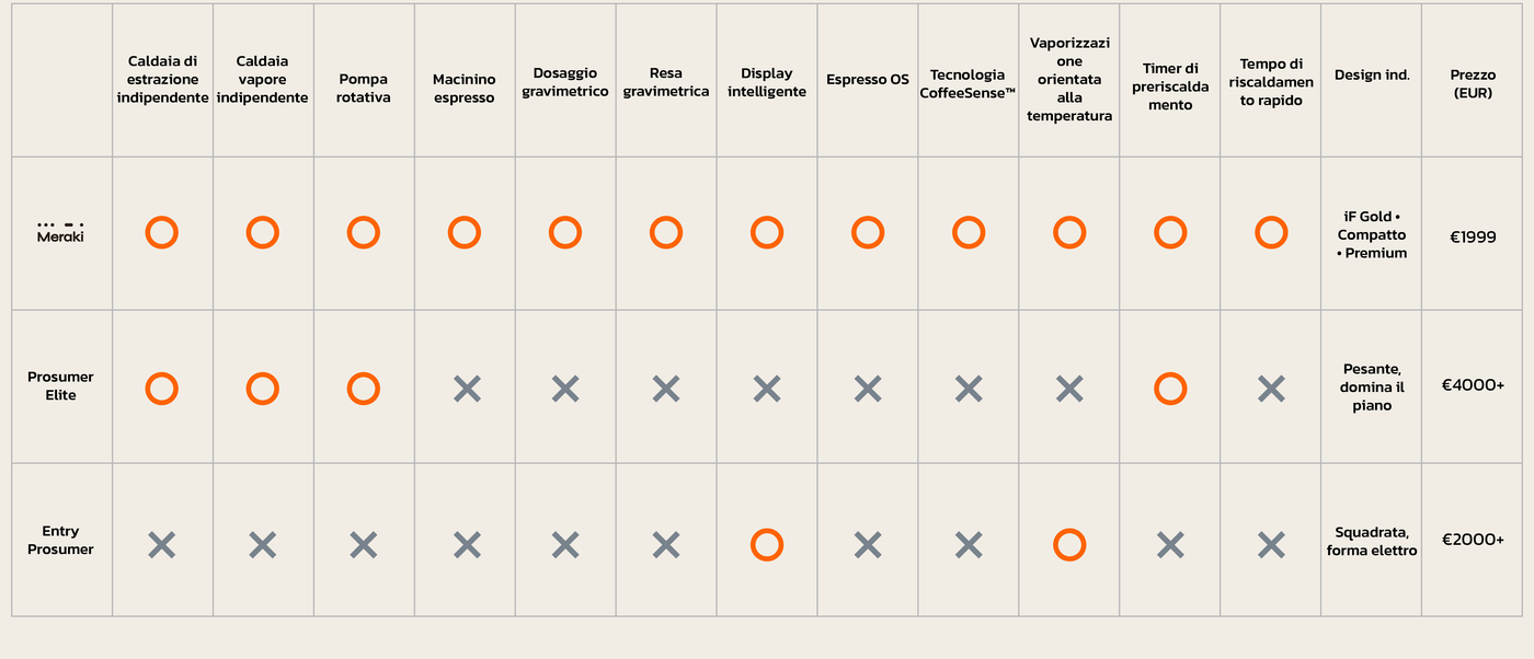 Progettata per valorizzare la tua cucina, Meraki unisce estetica premium ed efficienza compatta. La sua forma minimalista e le finiture di alta gamma la rendono al tempo stesso un oggetto di design e una macchina da caffè ad alte prestazioni, portando a casa tua la qualità del bar con eleganza e semplicità.