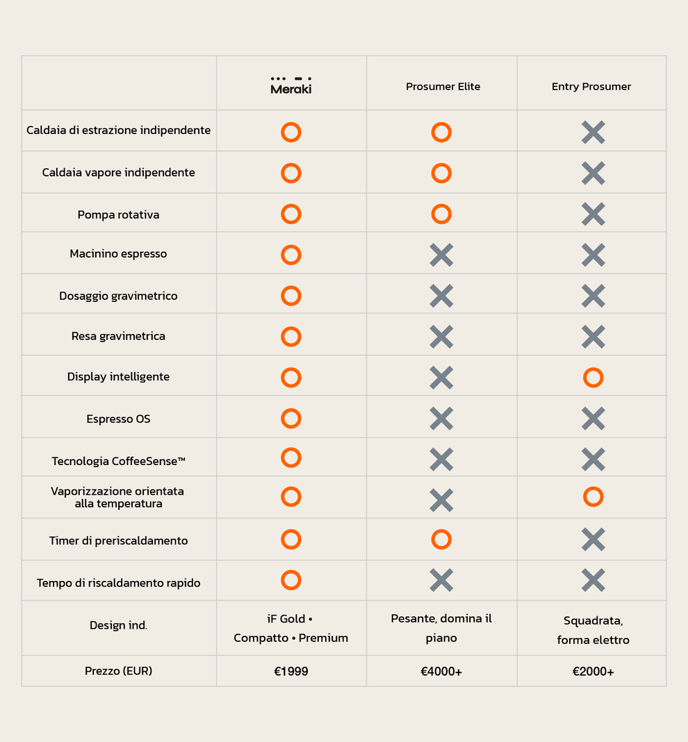Niente pulsanti criptici, niente manuali complessi. Il design pluripremiato di Meraki offre un touchscreen ad alta definizione vibrante che ti guida come un barista personale — perfetto anche per chi è alle prime armi.