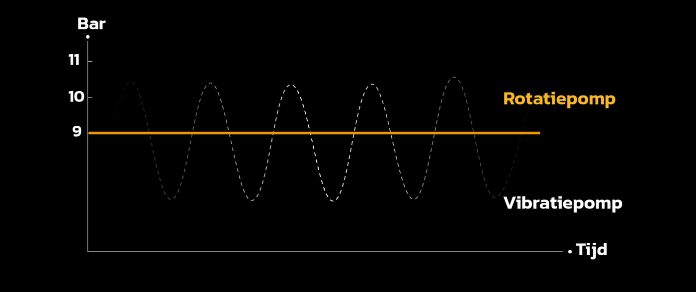 De professionele rotatiepomp levert een vlakke, constante druk zonder micro-schommelingen. Dit zorgt voor een gelijkmatige extractie, een zuivere smaak en een volle body — net als bij een echte professionele espressomachine.