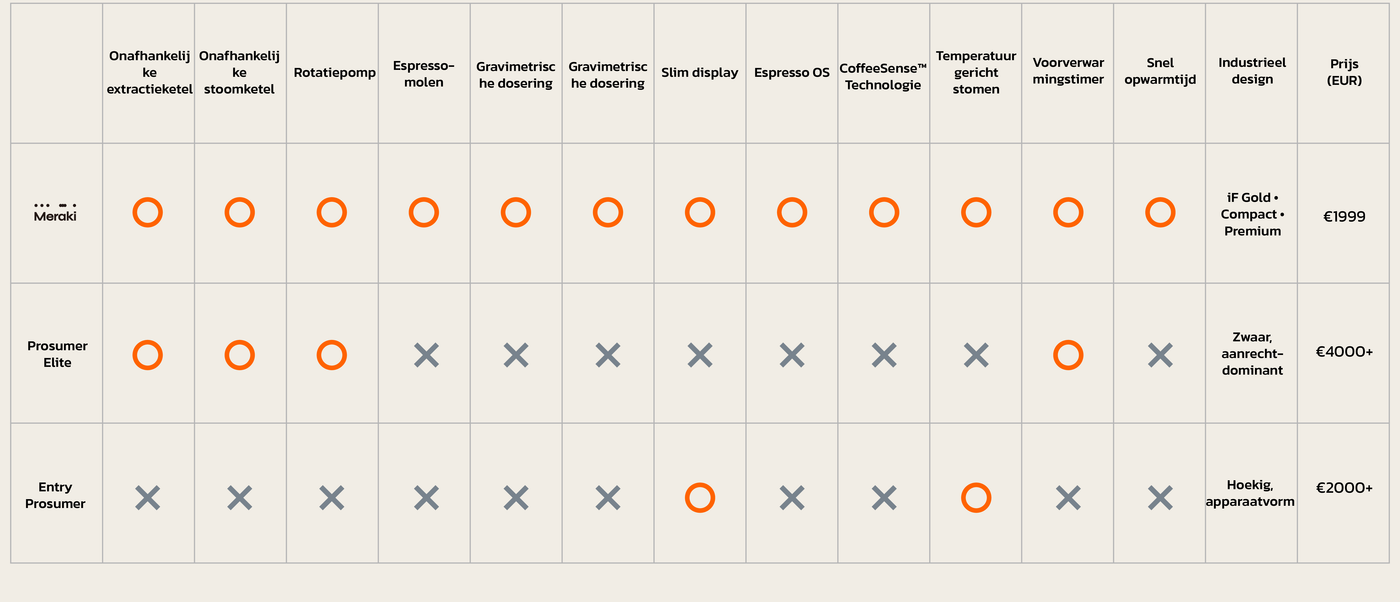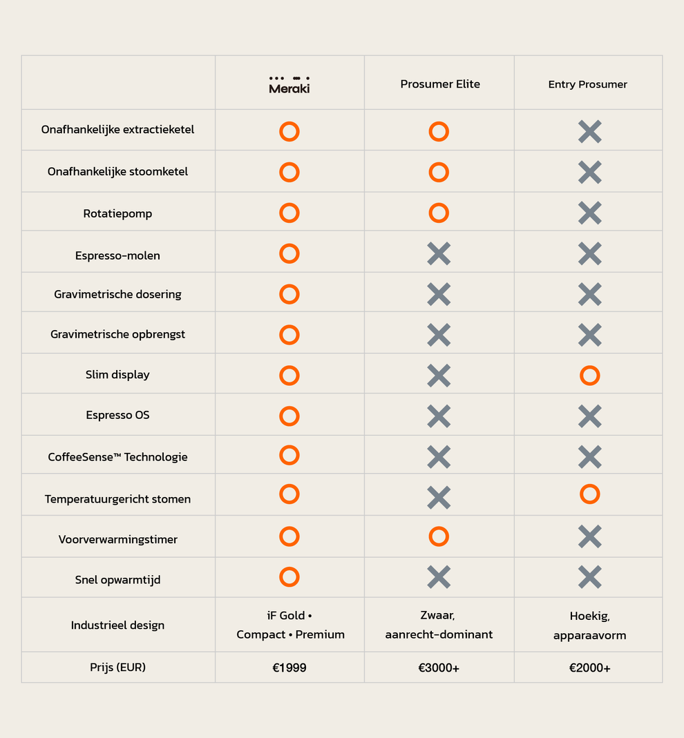 Meraki combineert high-end prestaties met intuïtief design. Als winnaar van de iF Design Gold Award 2025 beschikt het apparaat over gravimetrische dubbele weegschalen, heldere interfaces en een naadloze bediening. Hierdoor kan iedereen eenvoudig koffie van cafékwaliteit maken, van zijdezachte melk tot gebalanceerde espresso, zonder enig giswerk.